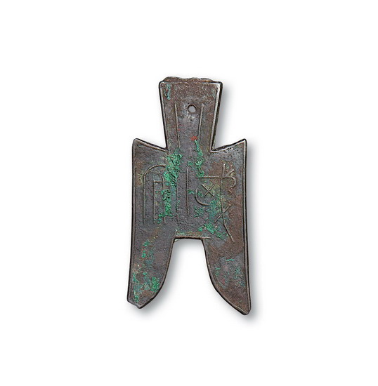“武安”斜肩空首布一枚,高:85mm,铸造精良,铜性极佳,字体高挺锋利,锈色艳丽,品相顶级,为所见品相最佳者,先秦钱币及空首布大名誉品,所见极少,甚为珍罕,极其难得,极美品编者按:春秋时期属晋,战国时期为赵之武安邑,秦灭赵后,武安属邯郸郡 ...