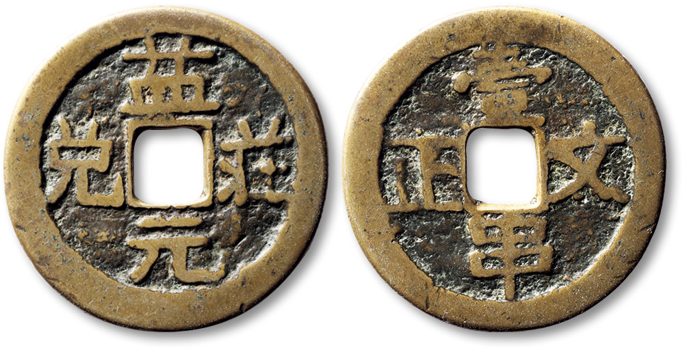 清益元庄兑背壹串文正方孔代用钱 极美品