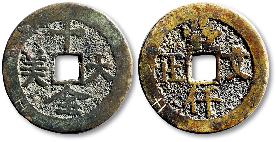 清十文、二十文铜币一组,共4枚,少数经清洗或有伤痕。请仔细检视。现况出售,概不退换。