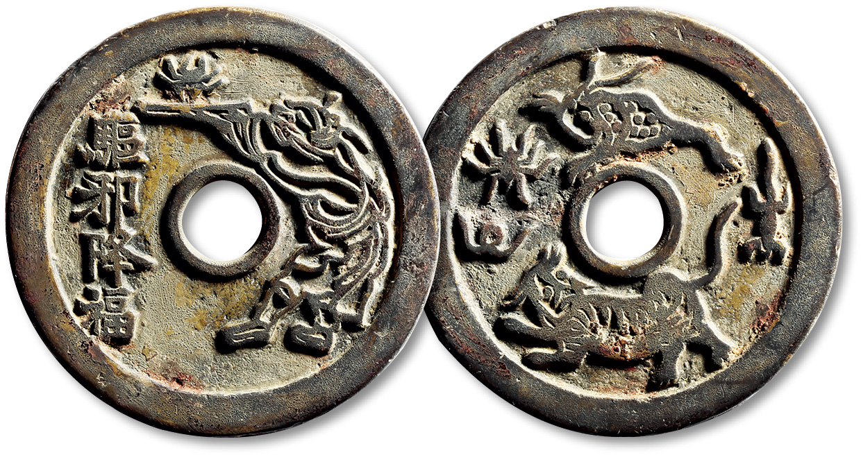 清“驱邪降福”背“五毒”花钱一枚,直径:45.5mm,极美品