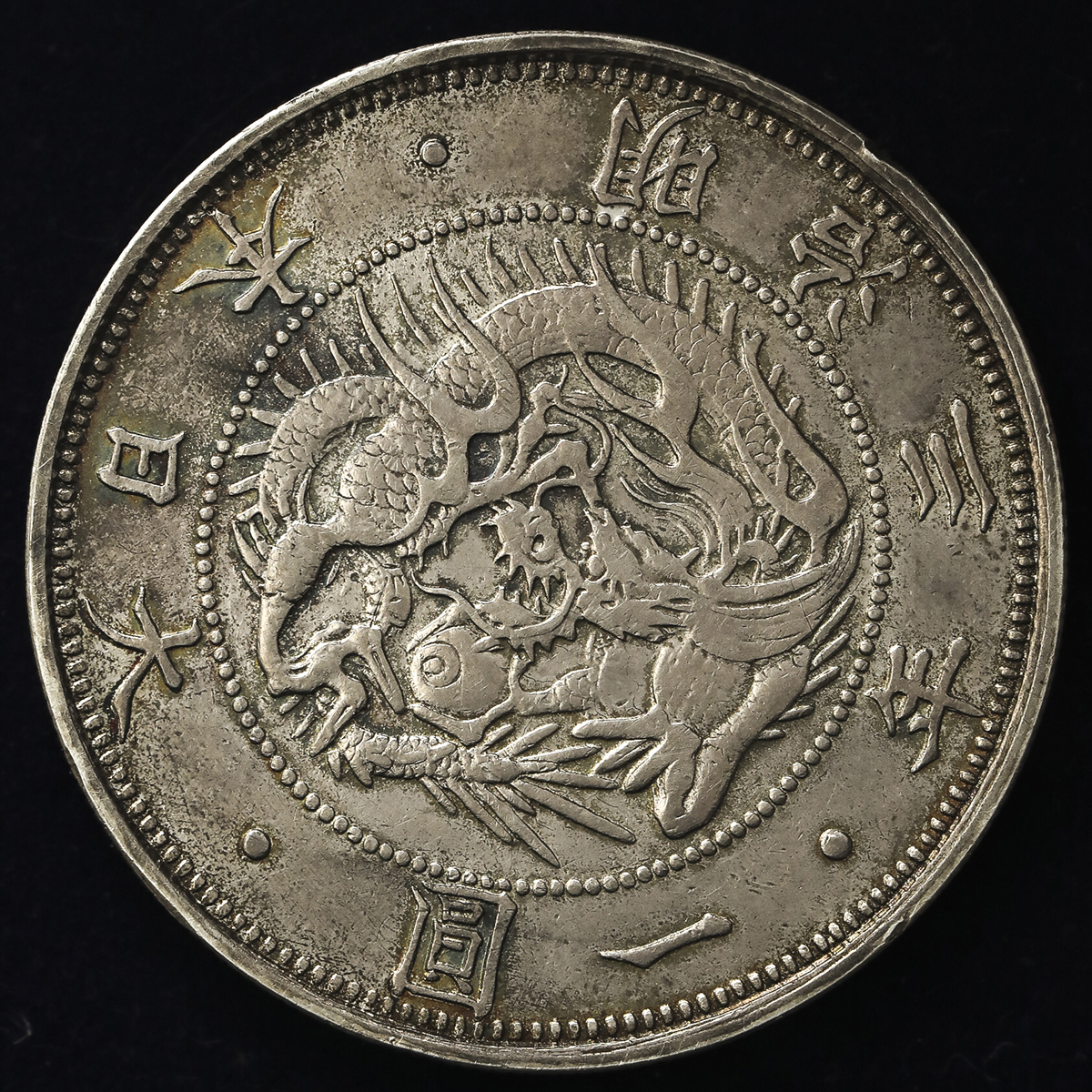 日本 旧一圆银货 Old type 1Yen 明治3年(1870) NGC-AU55 トーン EF。JNDA01-9 KM-Y5.1 普通圆 Type1 有轮,NGC-AU55