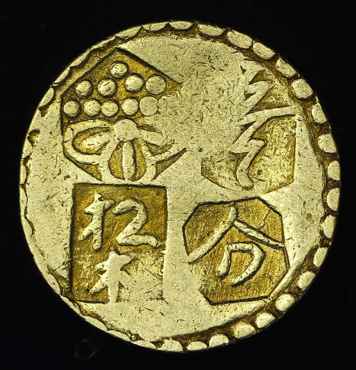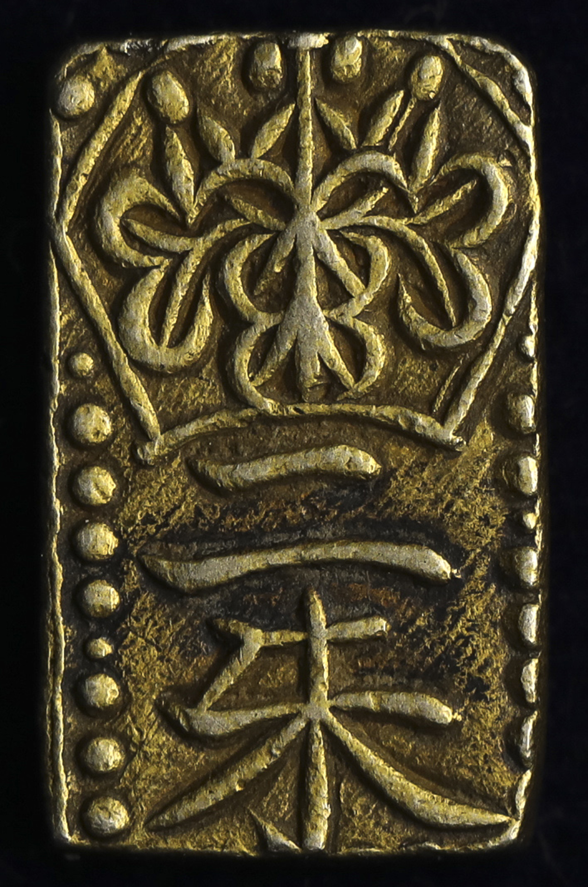 日本 万延二朱判金 Manen 2Shu-bankin 万延元年~明治2年(1860-69) 返品不可 要下见 Sold as is No returns 縁に小伤あり (F)并品。JNDA09-44 Fr-35 KM-C18a 逆打 縁に小伤あり (F)并品