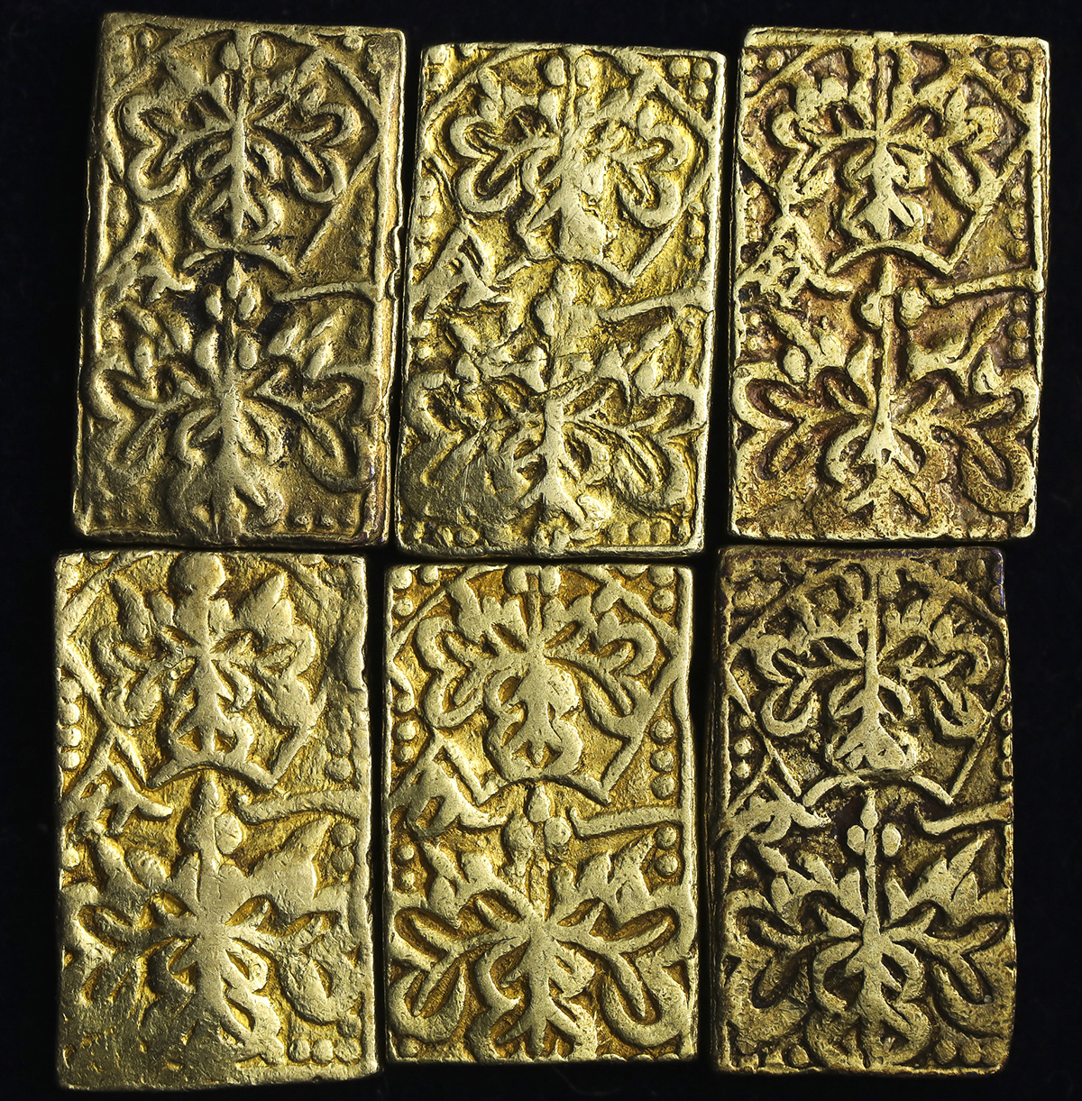 日本 元文一分判金Genbun1Bu-ban-kin 元文元年~文政元年(1736-1818) 计6枚组 6pcs 返品不可 要下见 Sold as is No returns (-VF~VF+)上品~美品。JNDA09-37 Fr-28 (-VF~VF+)上品~美品
