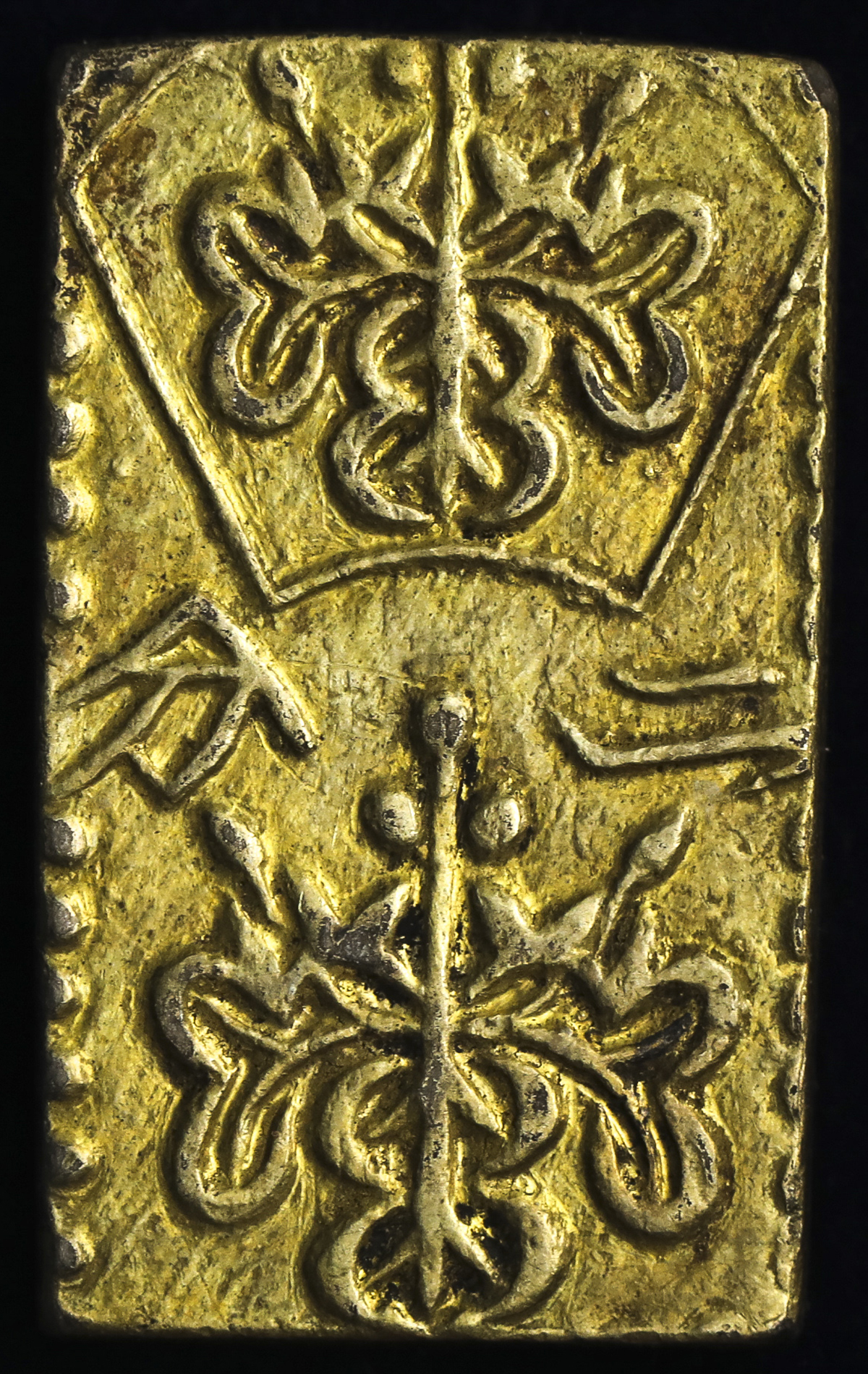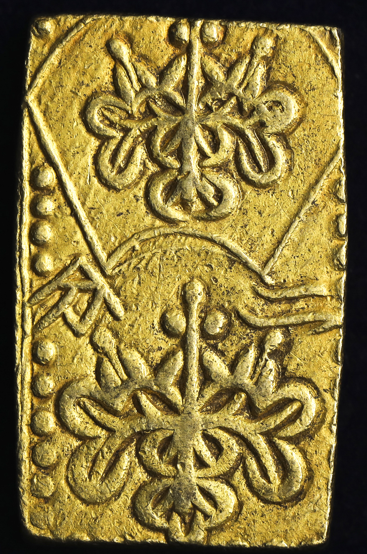 日本 万延二朱判金 Manen 2Shu-bankin 万延元年~明治2年(1860-69) 返品不可 要下见 Sold as is No returns 縁に小伤あり (F)并品。JNDA09-44 Fr-35 KM-C18a 逆打 縁に小伤あり (F)并品