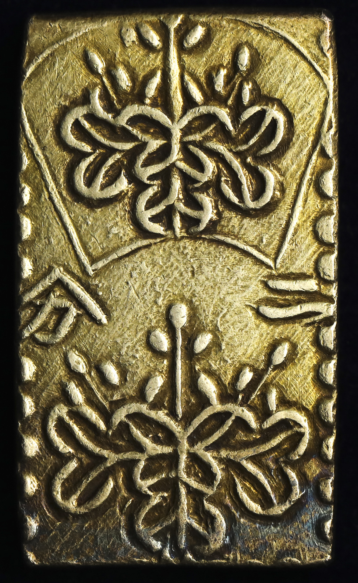 日本 天保二朱判金 Tenpo 2Shu-ban-kin 天保3年~安政5年(1832~58) (VF)美品。JNDA09-43 Fr-34 KM-C18 逆打 (VF)美品