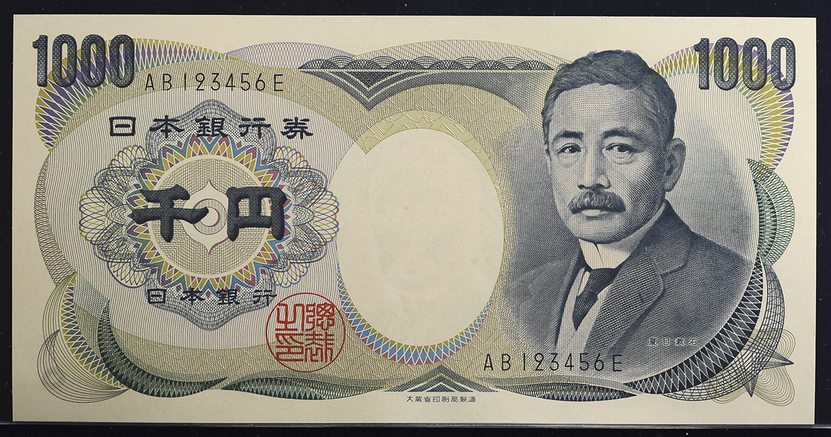 日本 夏目漱石1000円札 Bank of Japan(Natsume) 昭和59年(1984)~ (UNC)未使用品。JNDA11-81 P-97a 大藏省印刷局铭黒番号2桁 AB123456E (UNC)未使用品
