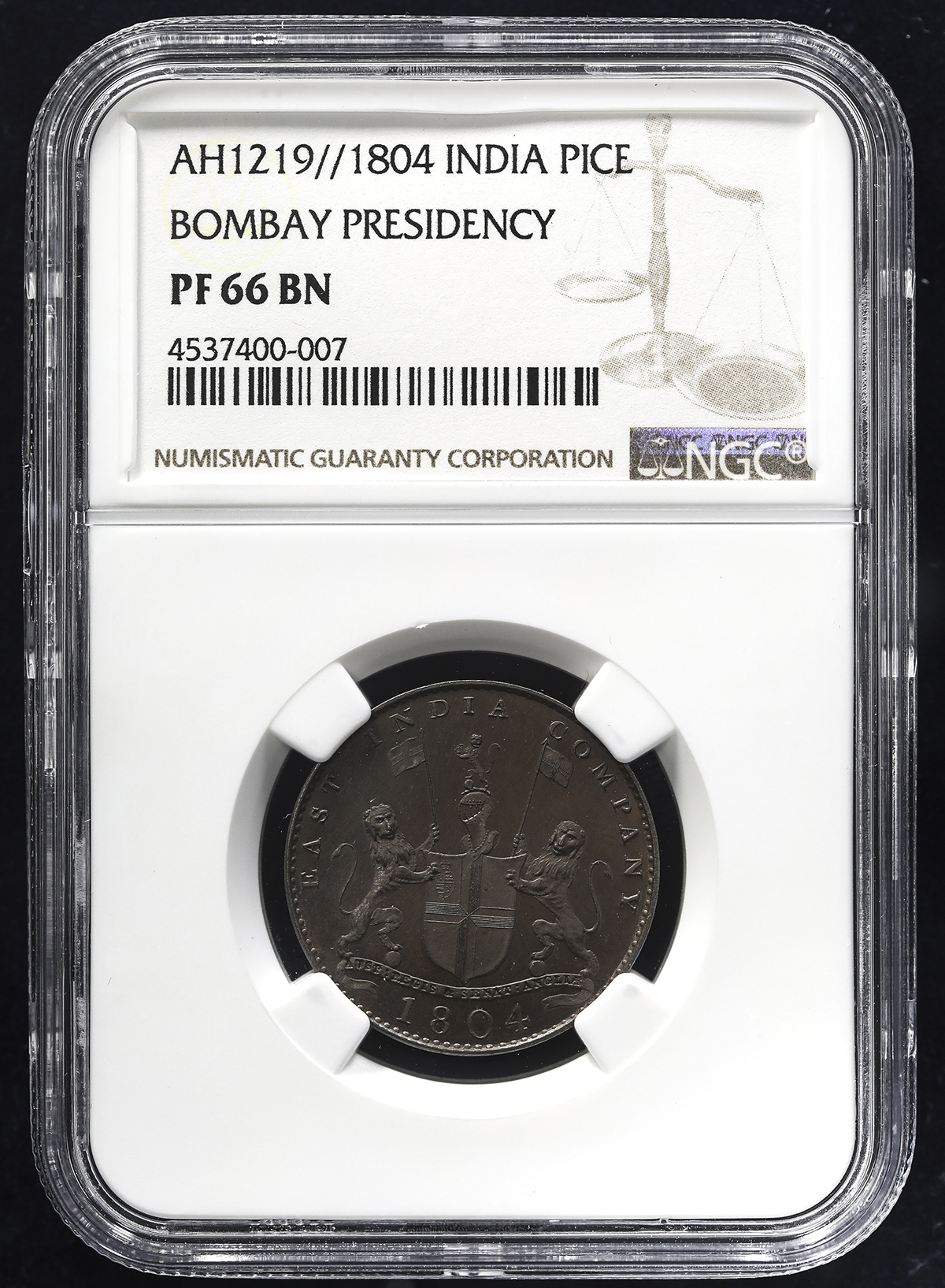 INDIA British India Bombay Presidency イギリス领インド・ボンベイ保护领 Pice 1804/AH1219 NGC-PF66BN Proof-FDC。KM-205 东インド会社铭 铜货 Proof-FDC