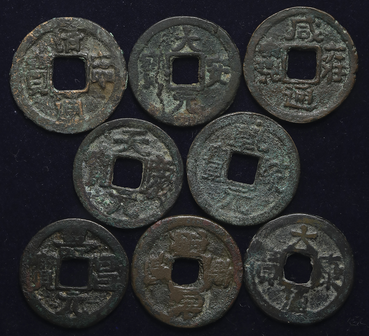 辽(Ryo) 重熈通宝 清宁通宝 咸雍通宝 大康元宝 大安元宝 寿昌元宝 乹统元宝 天庆元宝 返品不可 要下见 Sold as is No returns (VF)美品。辽(契丹)銭、中期以降のセット。ま之めて入手できる机会は稀少,返品不可 要下见 Sold as is No returns ...