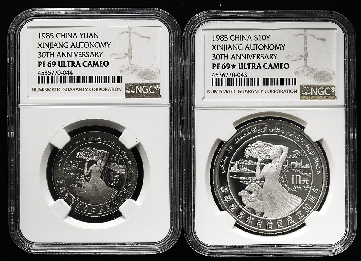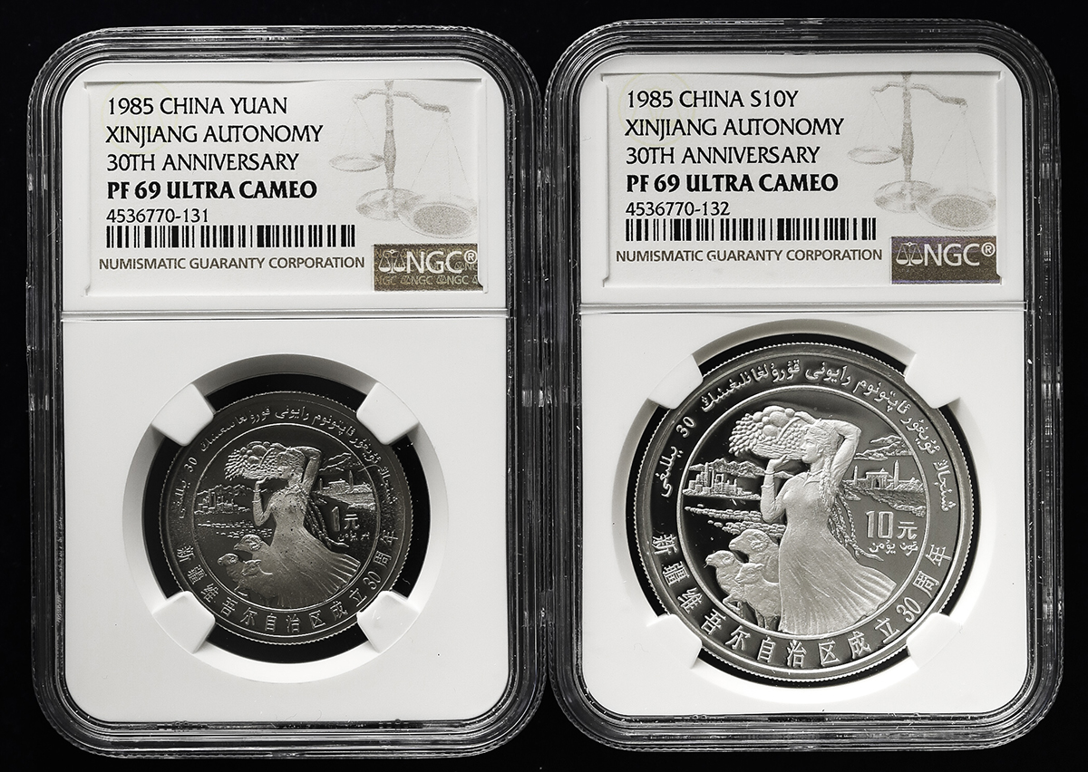 中华人民共和国 People‘s Republic of China Proof Set 1985 NGC-PF69&PF69★ Ultra Cameo 保証书付 オリジナ儿ケース付 with original case Proof。KM-PS17 新疆省自治区成立30周年精制记念币 プ儿ーフ货2点セット,NGC-PF69&PF69★ Ultra Cameo 保証书付 オリジナ儿ケー ...