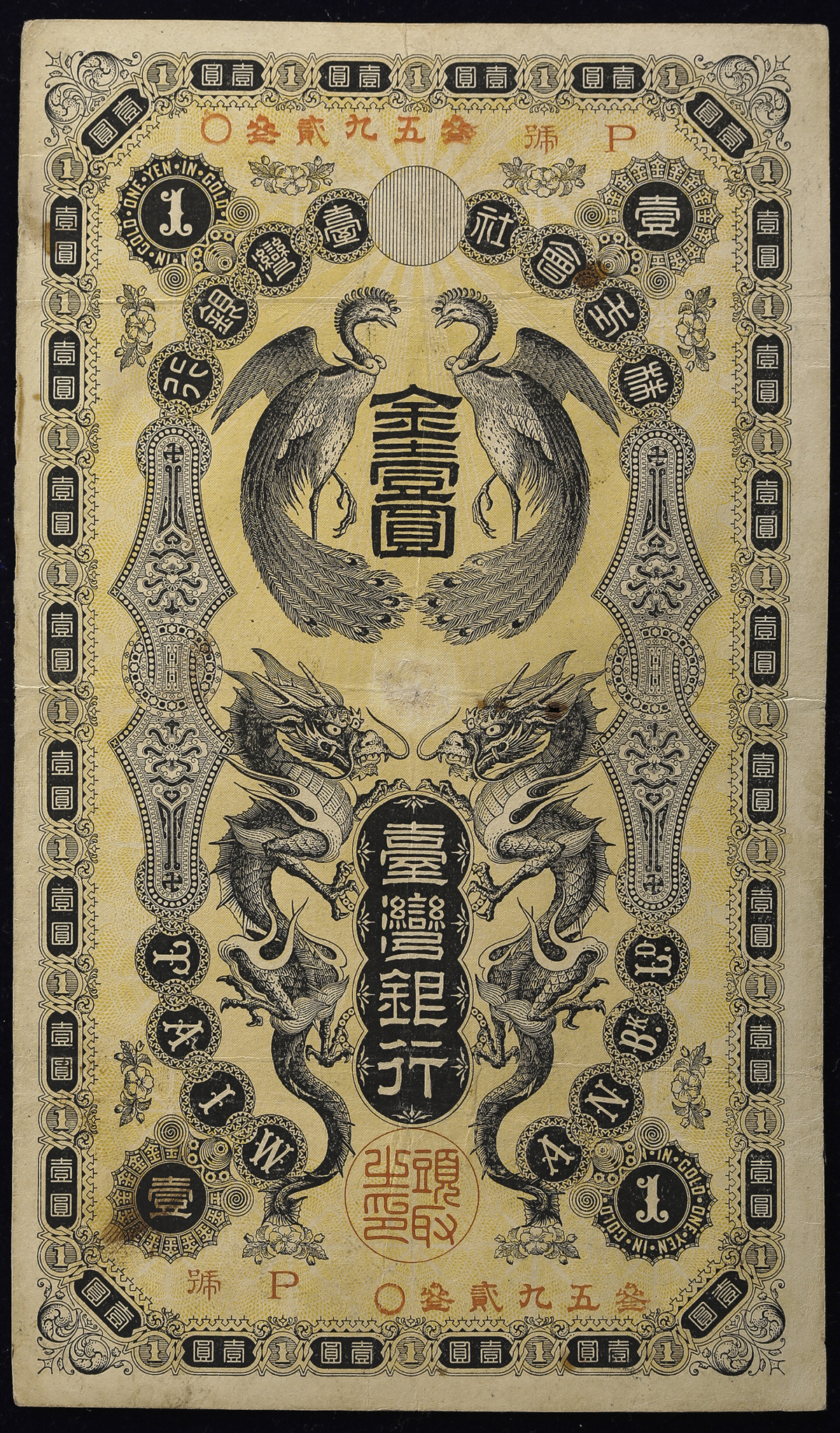 台湾银行 Bank of Taiwan 旧1圆金券(Yen) 明治37年(1904) 返品不可 要下见 Sold as is No returns シミ、穴あり 美品(-VF)上品。JNDA16-4 P-1911 シミ、穴あり 美品(-VF)上品