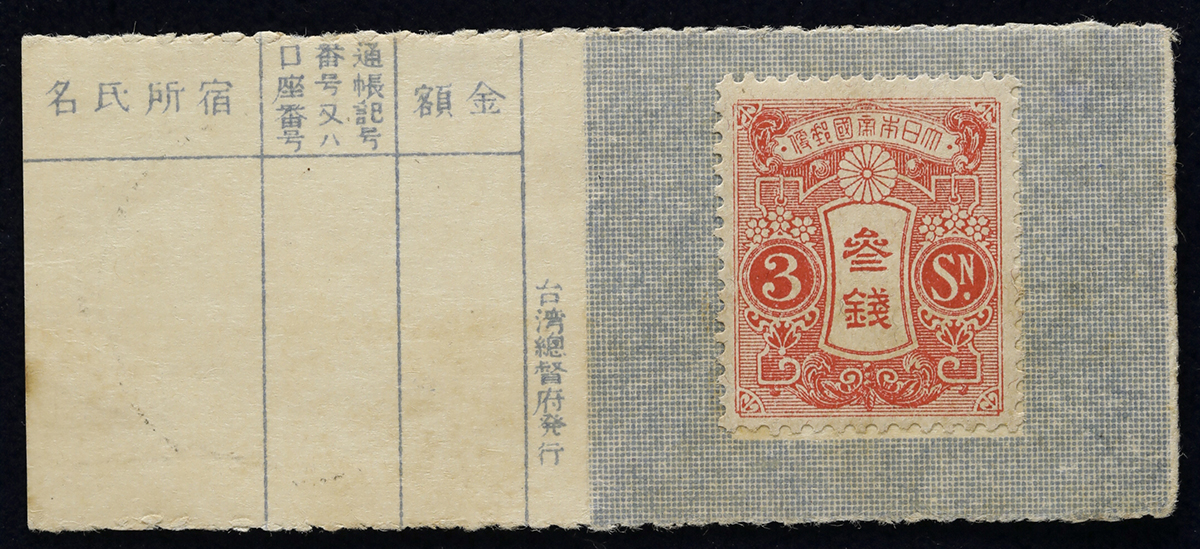 台湾総督府 Emergency Potage Stamp Subsidiary 3銭(Sen) ND(1918) 返品不可 要下见 Sold as is No returns (-EF)极美品。P-1919,返品不可 要下见 Sold as is No returns