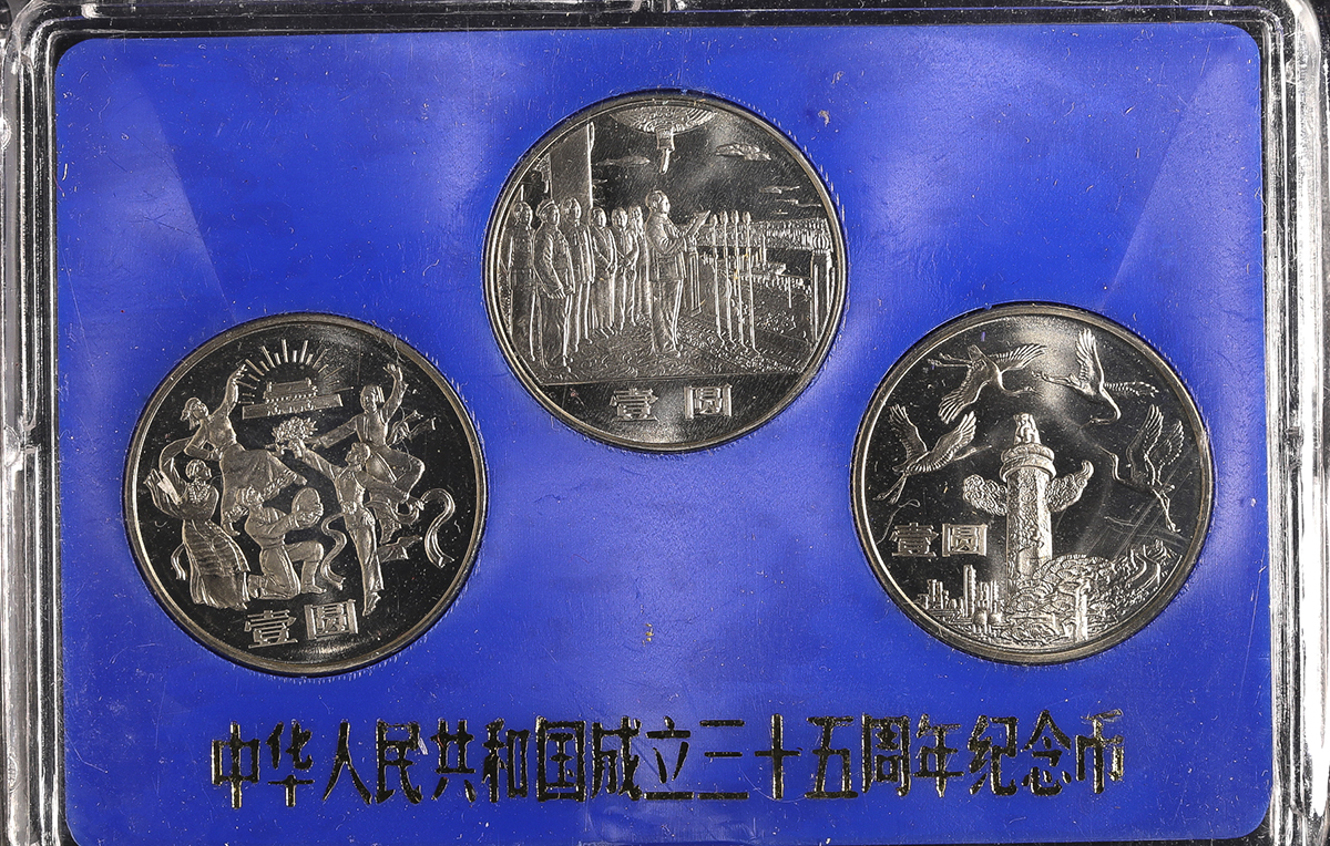 中华人民共和国 People‘s Republic of China Proof Set 1984 オリジナ儿ケース付 with original case。KM-PS14(104~106) 中华人民共和国成立35周年记念币 プ儿ーフ白铜货3种セット,オリジナ儿ケース付 with original case ...