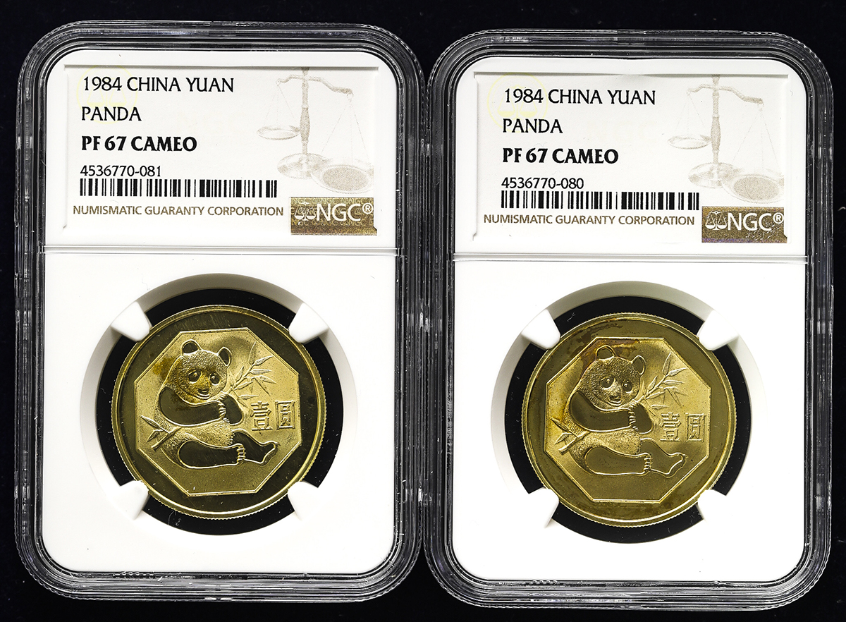 中华人民共和国 People‘s Republic of China 1元(Yuan) 1984 NGC-PF67 Cameo(×2) Proof。KM-85 パンダ黄铜货,NGC-PF67 Cameo(×2)