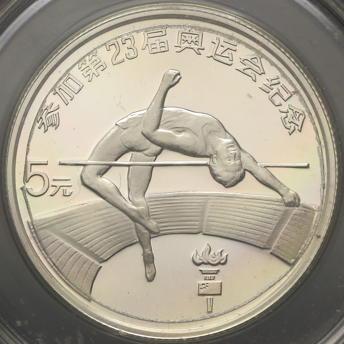 中华人民共和国 People‘s Republic of China 5元(Yuan) 1984 オリジナ儿ケース付 with original case Proof。KM-97 ロス五轮 高跳び 制造10000枚,オリジナ儿ケース付 with original case