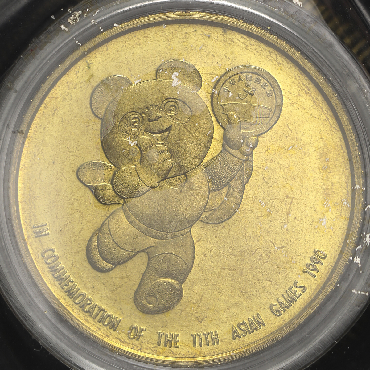 中华人民共和国 People‘s Republic of China Brass Medal 1990 オリジナ儿ビニー儿入り with original bag UNC。パンダ黄铜货 第十一届亚洲运动会记念,オリジナ儿ビニー儿入り with original bag