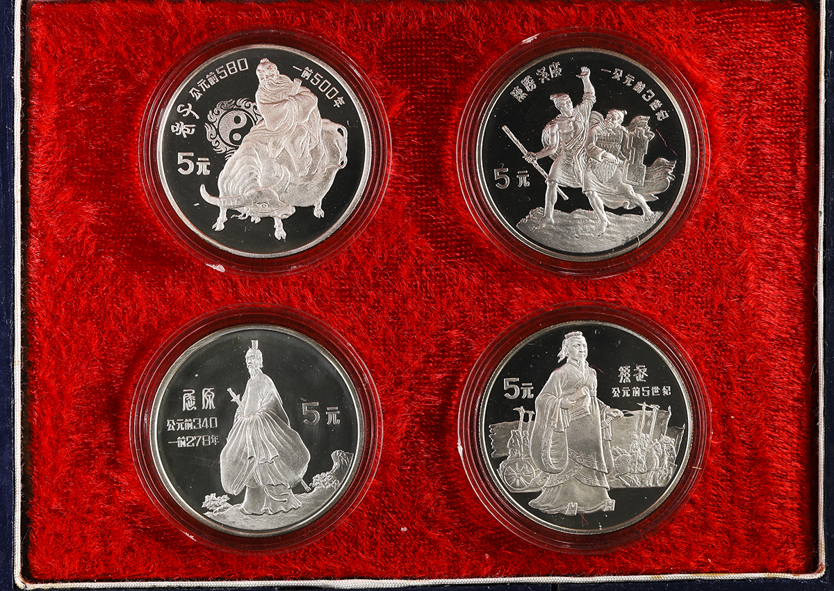 中华人民共和国 People‘s Republic of China Proof Set 1985 保証书付 オリジナ儿ケース付 with original case Proof。KM-PS18(KM-121~124) 中国杰出歴史人物记念币 プ儿ーフ货4种セット,保証书付 オリジナ儿ケース付 with original case ...