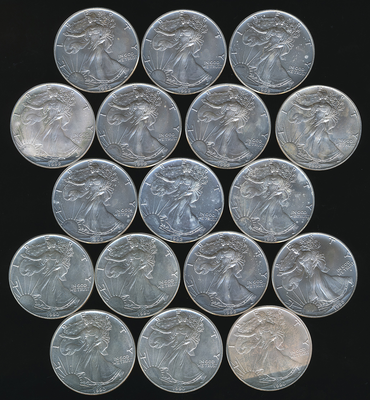 USA アメリカ合众国 Dollar 1986(×5),87(×5),88(×10),89(×2),90(×5),92(×12) 返品不可 要下见 Sold as is No returns。KM-273 Silver Eagle シ儿バーイーグ儿 1オンス银货 ,返品不可 要下见 Sold as is No returns