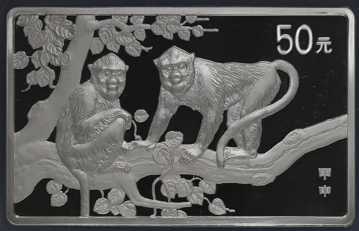 中华人民共和国 People‘s Republic of China 50元(Yuan) 2004 NGC-PF69 Ultra Cameo 保証书付 オリジナ儿ケース付 with original case Proof。KM-1551 申年 长方形型 5オンス(5Oz)银货 制造1888枚,NGC-PF69 Ultra Cameo 保証书付 オリジナ儿ケース付 with original case ...