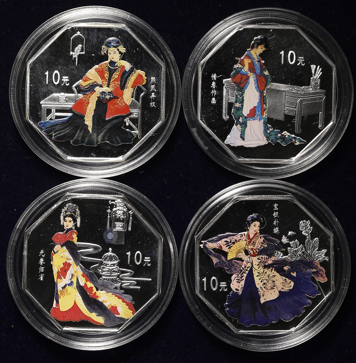 中华人民共和国 People‘s Republic of China Proof Set 2002 保証书付 オリジナ儿ケース付 with original case。KM‐1441~1444 中国古典文学名著记念币 第2组 红楼梦 カラー八角形1オンス(1Oz)银货4种セット,保証书付 オリジナ儿ケース付 with original case ...