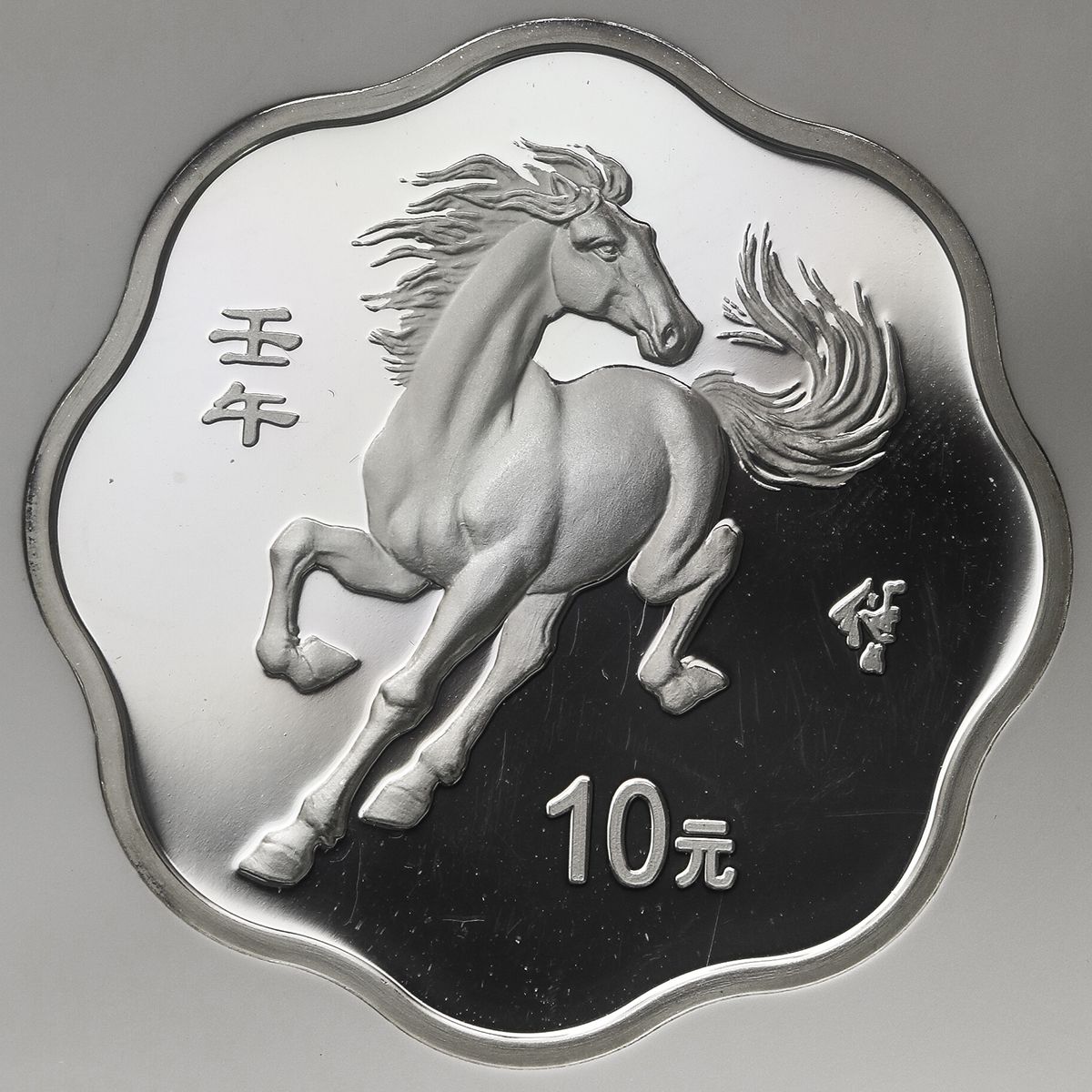 中华人民共和国 People‘s Republic of China 10元(Yuan) 2002 NGC-PF64 Ultra Cameo 保証书付 オリジナ儿ケース付 with original case Proof。KM-1425 午年 ホタテ型银货 制造6800枚,NGC-PF64 Ultra Cameo 保証书付 オリジナ儿ケース付 with original case ...