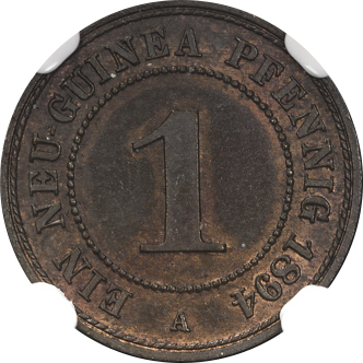 GERMAN NEW-GUINEA ドイツ领ニューギニア Pfennig 1894A NGC-MS63BN UNC。KM-1 通常货 UNC