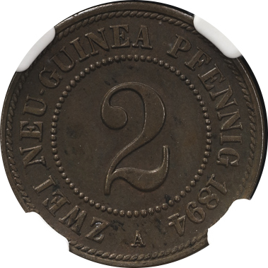 GERMAN NEW-GUINEA ドイツ领ニューギニア 2Pfennig 1894A NGC-MS62BN AU~UNC。KM-2 通常货 AU~UNC