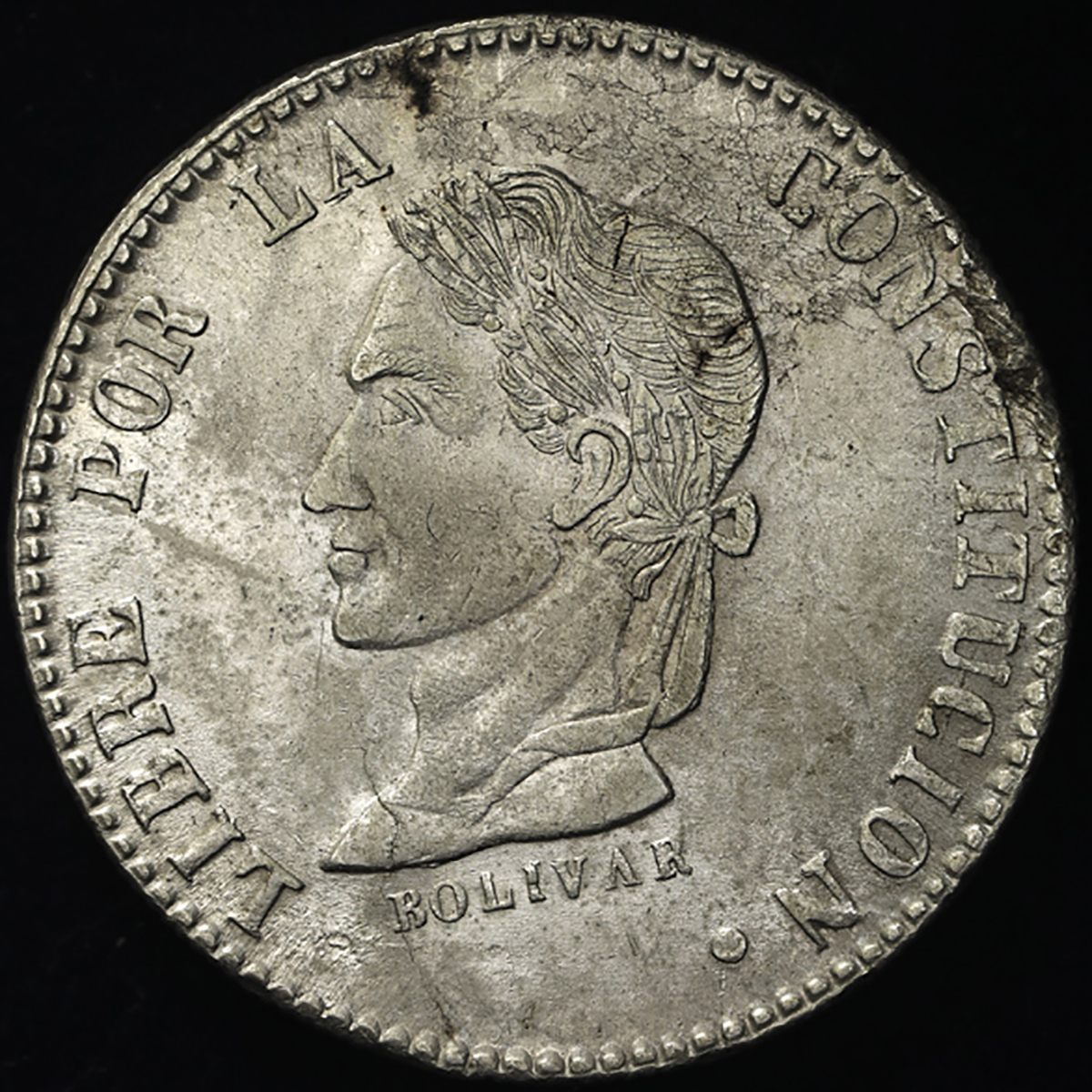 BOLIVIA ボリビア 4Soles 1859PTS FJ 縁に小伤 EF。KM-123.3 シモン・ボリバ儿 縁に小伤 EF