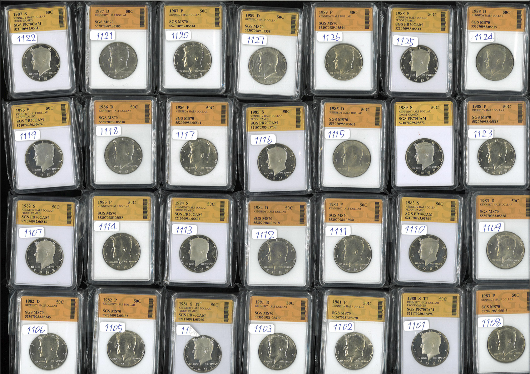 USA アメリカ合众国 50Cents 1981~89 全てSGS-MS70かPR70 返品不可 要下见 Sold as is No returns UNC&Proof。KM-A202b ケネディ(白铜)各PDS3种完全揃い +1980S,全てSGS-MS70かPR70 返品不可 要下见 Sold as is No returns