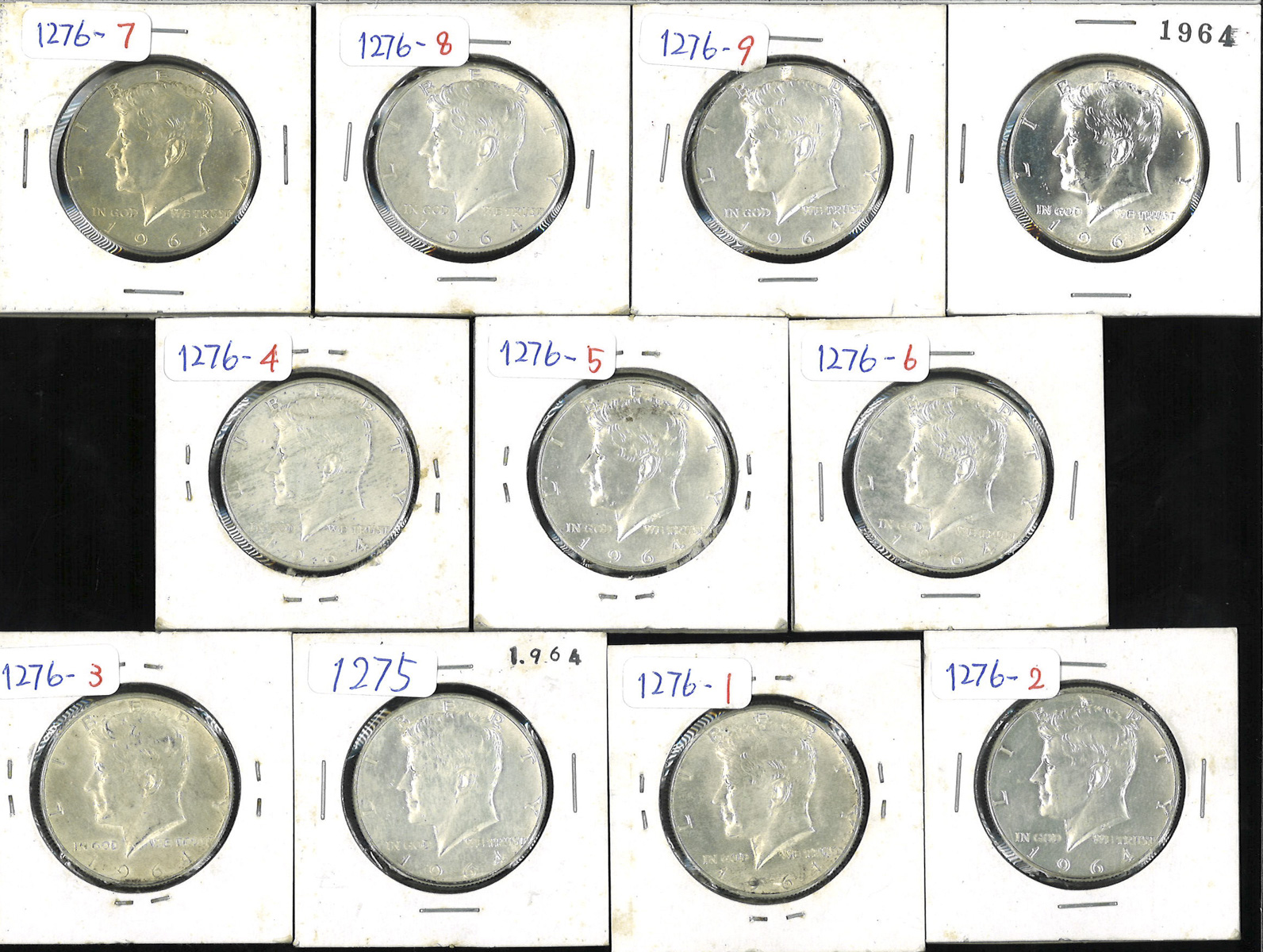 USA アメリカ合众国 50Cents 1964,64D(×10) 计11枚组 11pcs 返品不可 要下见 Sold as is No returns VF~UNC。KM-200 ケネディ(银90%) VF~UNC