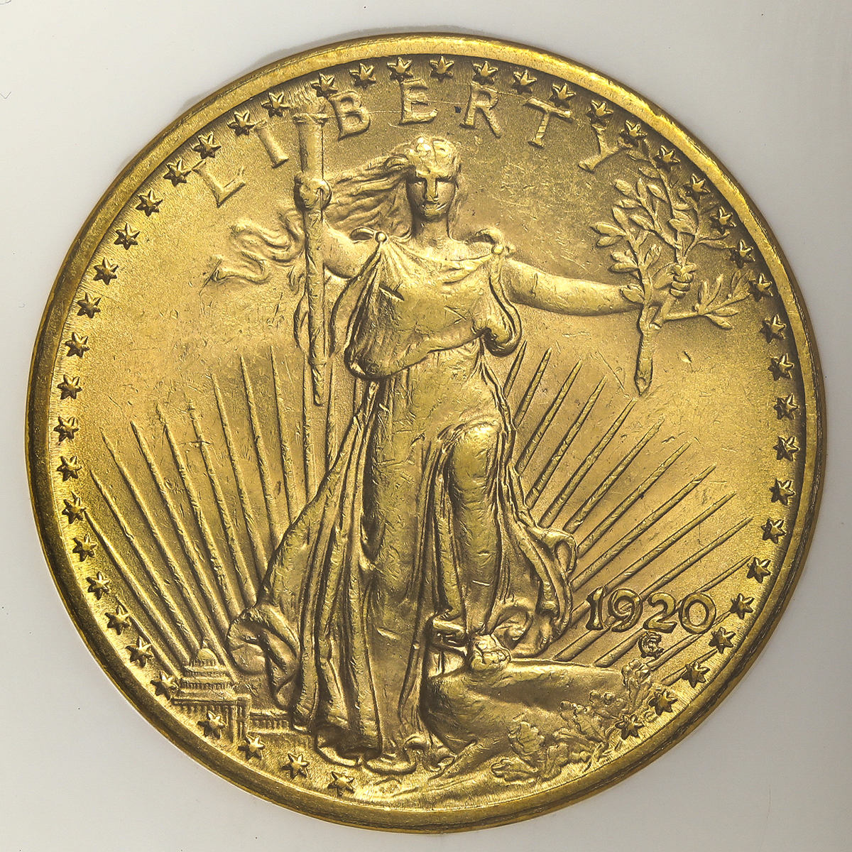 USA アメリカ合众国 20Dollars 1920 NGC-MS62 AU/UNC。Fr-185 KM-131 Saint-Gaudens,NGC-MS62