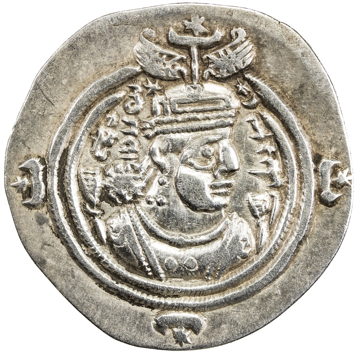 Ancient - Near East,SASANIAN KINGDOM: Hormizd V, 631-632, AR drachm (4.12g), MY (Mishan), year 2, G-230, bold strike, choice VF to EF, ex Alan S. DeShazo Collection.