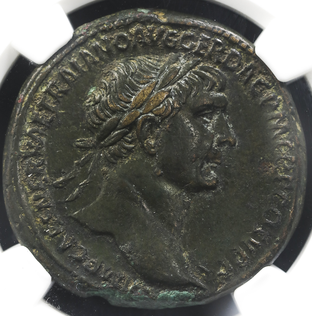 Roman Empire ローマ帝国 AE Sestertius Trajan トラヤヌス AD98~117 NGC-Ch.XF“Strike5/5 Surface3/5 Fine Style“ VF~EF。右向き头像/跳跃する皇帝右向き骑马像 ローマ鋳(AD107) S-3204 RIC-534 C-503 (26.55g) 稀少な状态,NGC-Ch.XF“Strike5/5 Surface3/5 Fine Style“ ...