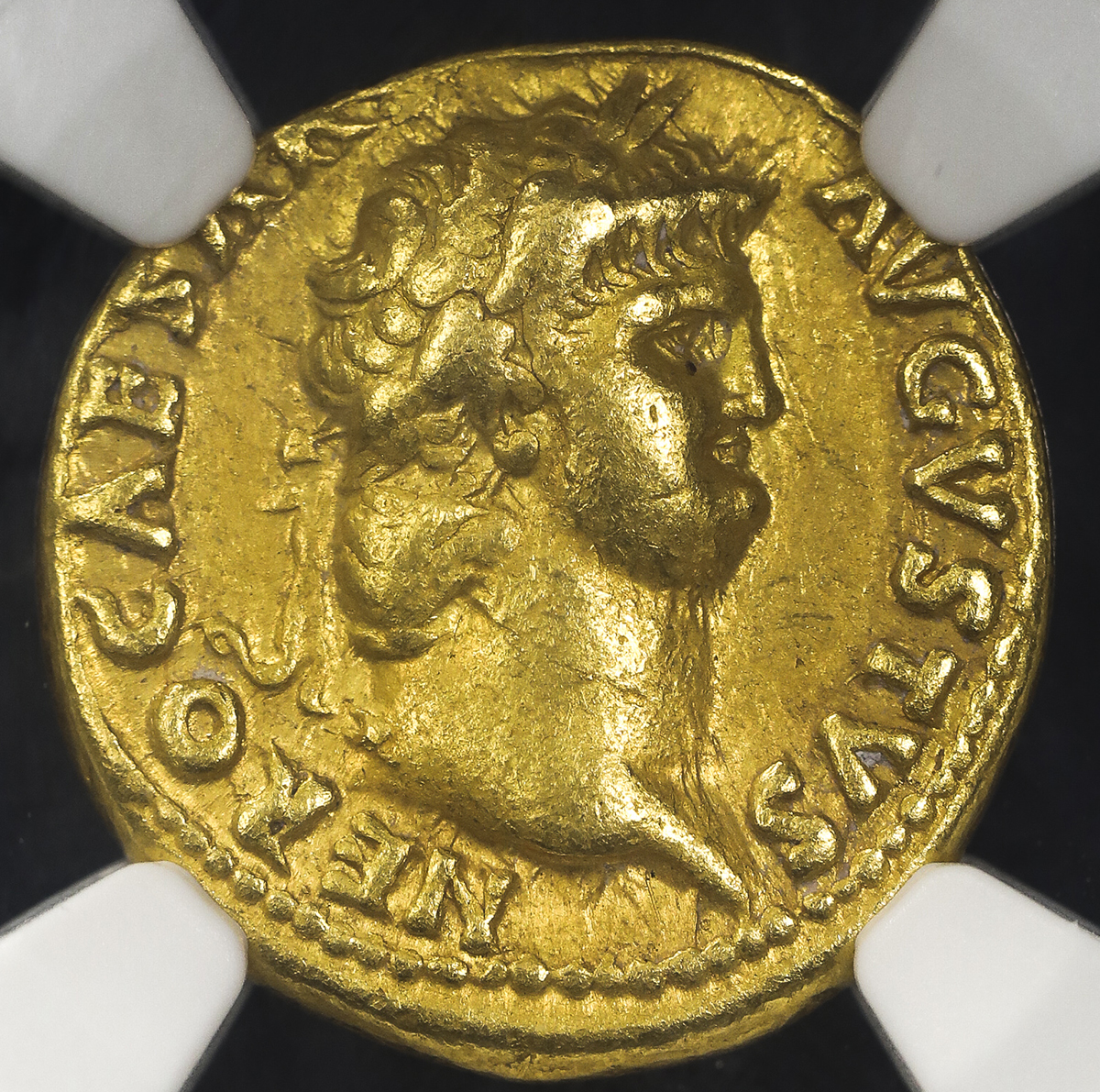Roman Empire ローマ帝国 AV Aureus Nero ネロ AD54~68 NGC-Ch.VF“Strike4/5 Surface3/5“ VF+。右向き头像/ユピテ儿左向き座像 ローマ鋳(AD64/65) Fr-94 S-1930 RIC-52 C-118 Calico-412 (7.31g),NGC-Ch.VF“Strike4/5 Surface3/5“