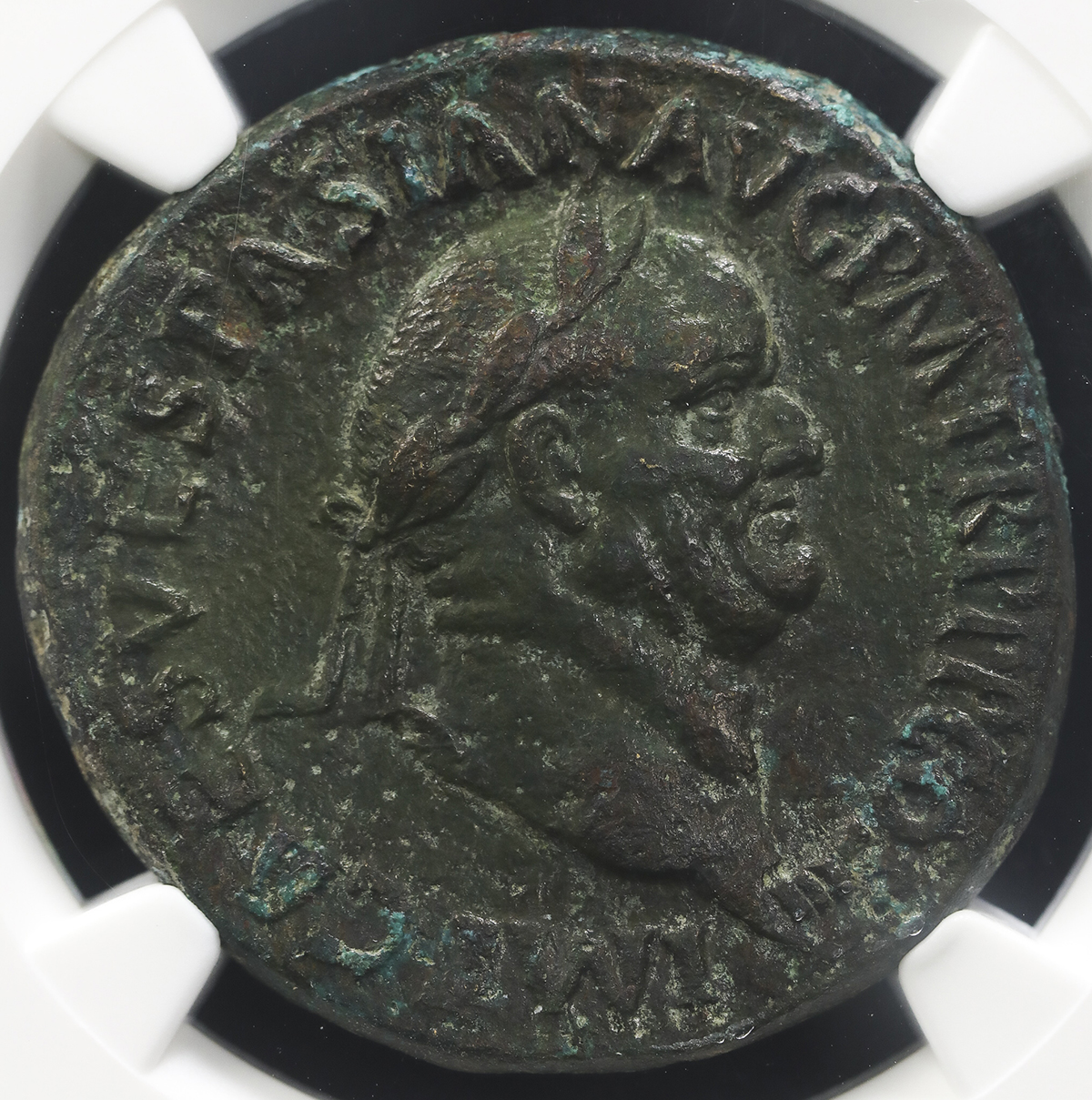 Roman Empire ローマ帝国 AE Sestertius Vespasian ヴェスパシアヌス AD69~79 NGC-Ch.XF“Strike5/5 Surface2/5 Fine Style lt.smoothing“ 锖取り VF+。右向き头像/マ儿ス右向き前进像 ローマ鋳(AD71)AD71 S-2335type (26.05g) 稀少な状态,NGC-Ch.XF“Strike5/5 Surface2/5 ...