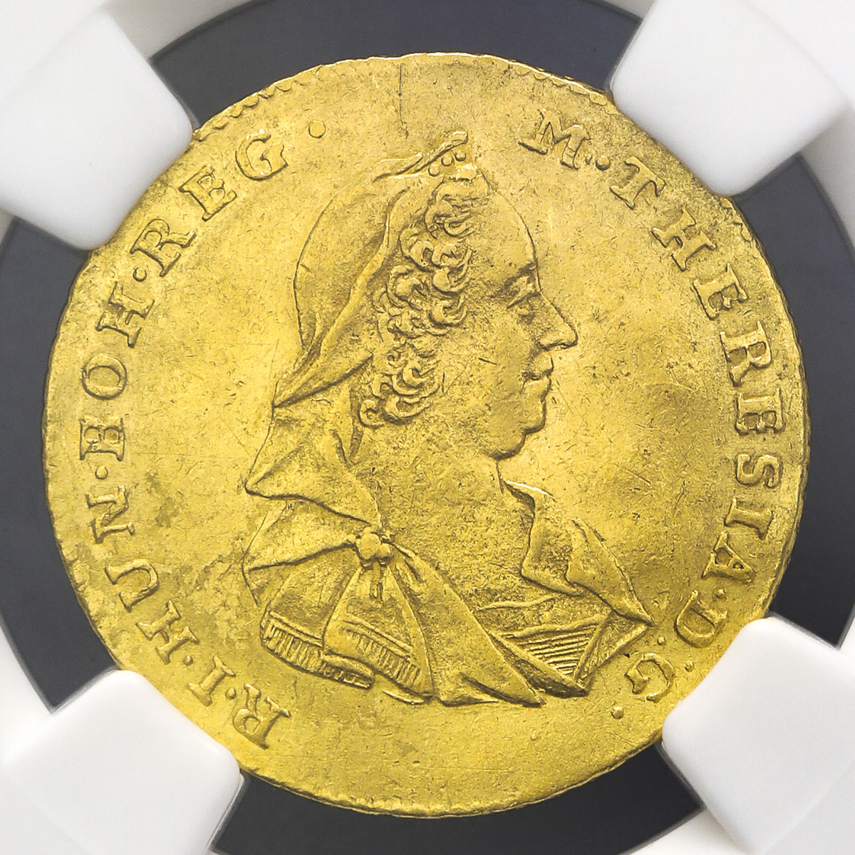HOUSE OF HABSBURG Maria Theresia マリア・テレジア(1740~80) 2Ducats 1777HS NGC-AU50 -EF。Fr-541(ハンガリー) KM-650カー儿スブ儿ク(トランシ儿バニア),NGC-AU50