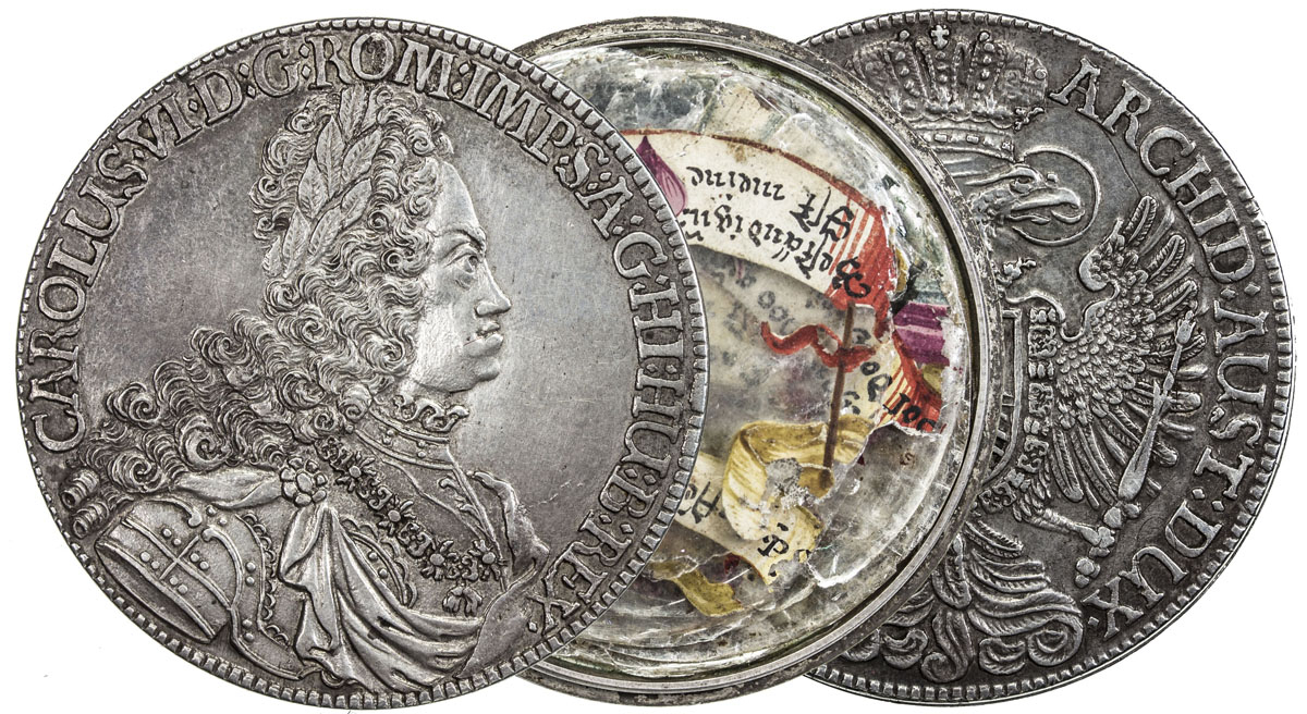 World Coins - Europe,AUSTRIA: Karl VI, 1711-1740, AR box thaler (12.98g), 1719, KM-1594, Dav-1053, Hall Mint issue, very well made, host is well struck with pleasing natural tone, EF.