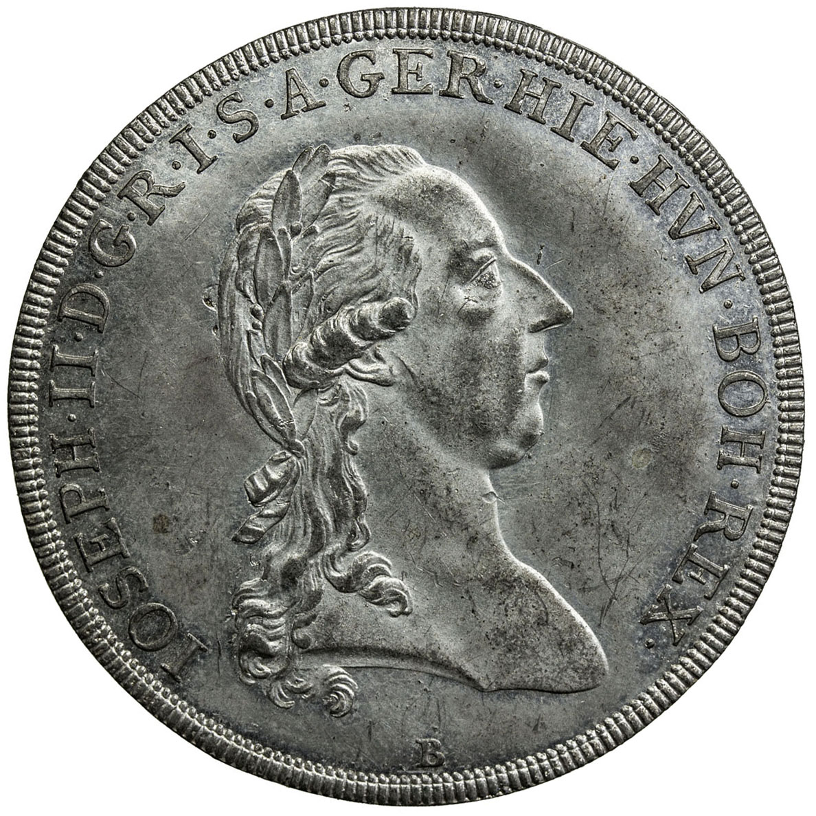 World Coins - Europe,AUSTRIAN NETHERLANDS: Josef II, 1765-1790, white metal kronentaler, Kremnitz, Dav-1170 cf., uniface cliché, lustrous example, ex Jess Peters Auction, 19 Jan 1984, Lot 435. A reverse die trial, properly termed a cliché, produced f ...
