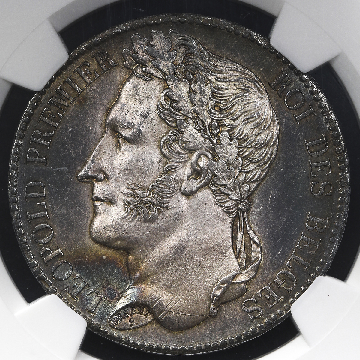 BELGIUM ベ儿ギー 5Francs 1833 NGC-MS63 トーン UNC。Dav-50 KM-3.1 レオポ儿ド1世 PosB,NGC-MS63