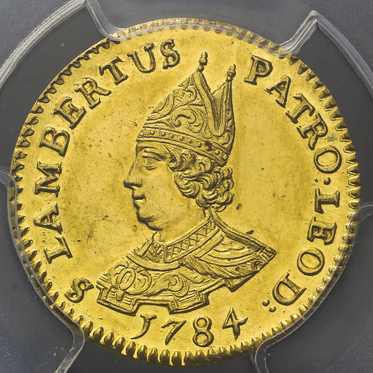 BELGIUM Liege リエージュ司教领 Ducat1784 PCGS-AU Details“Cleaned“ 洗浄によるヘアラインある以外、ほぼ未使用品 AU。Fr-224 Del-371 KM-177 セデ・ヴァカンテ 圣ランベー儿 制造150枚! この司教领では17世纪にセデ・ヴァカンテ (大空位)の度に6种のダカット金货を発行 ...