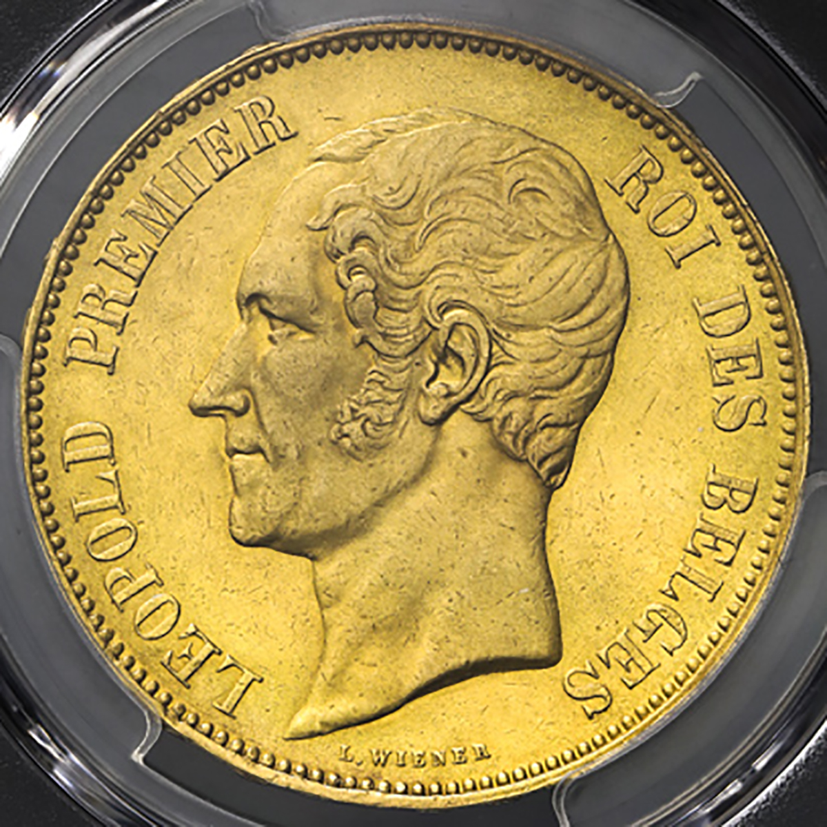 BELGIUM ベ儿ギー 100Francs 1853 PCGS-AU Details“Repaired“ 修正あり EF。Fr-409 KM-XM3.1 Dup-538 レオポ儿ド1世/ブラバント公婚约 制造482枚 Ⓡ,PCGS-AU Details“Repaired“