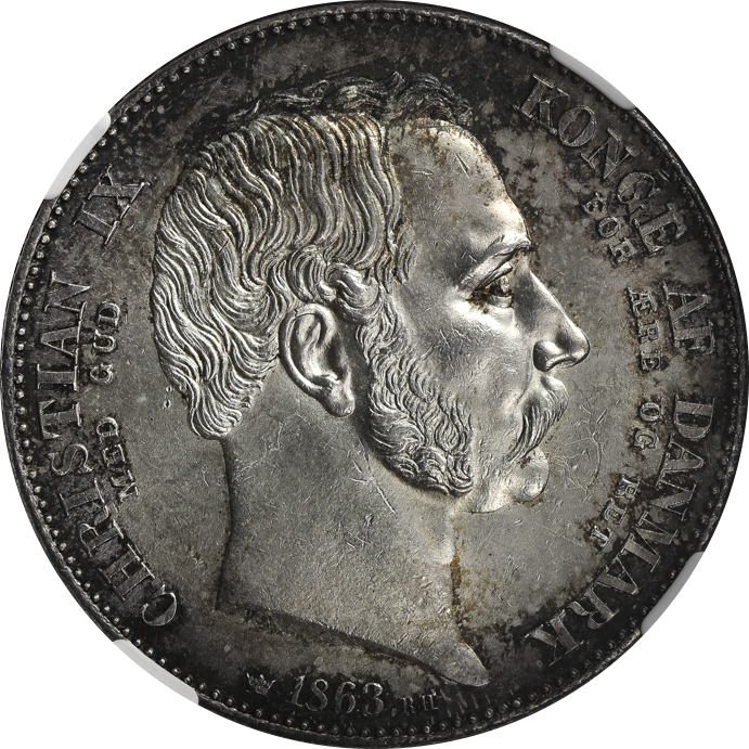 DENMARK デンマーク 2Rigsdaler 1863HC-RH NGC-MS62 -UNC。Dav-78 KM-770 クリスチャン9世 王位継承,NGC-MS62