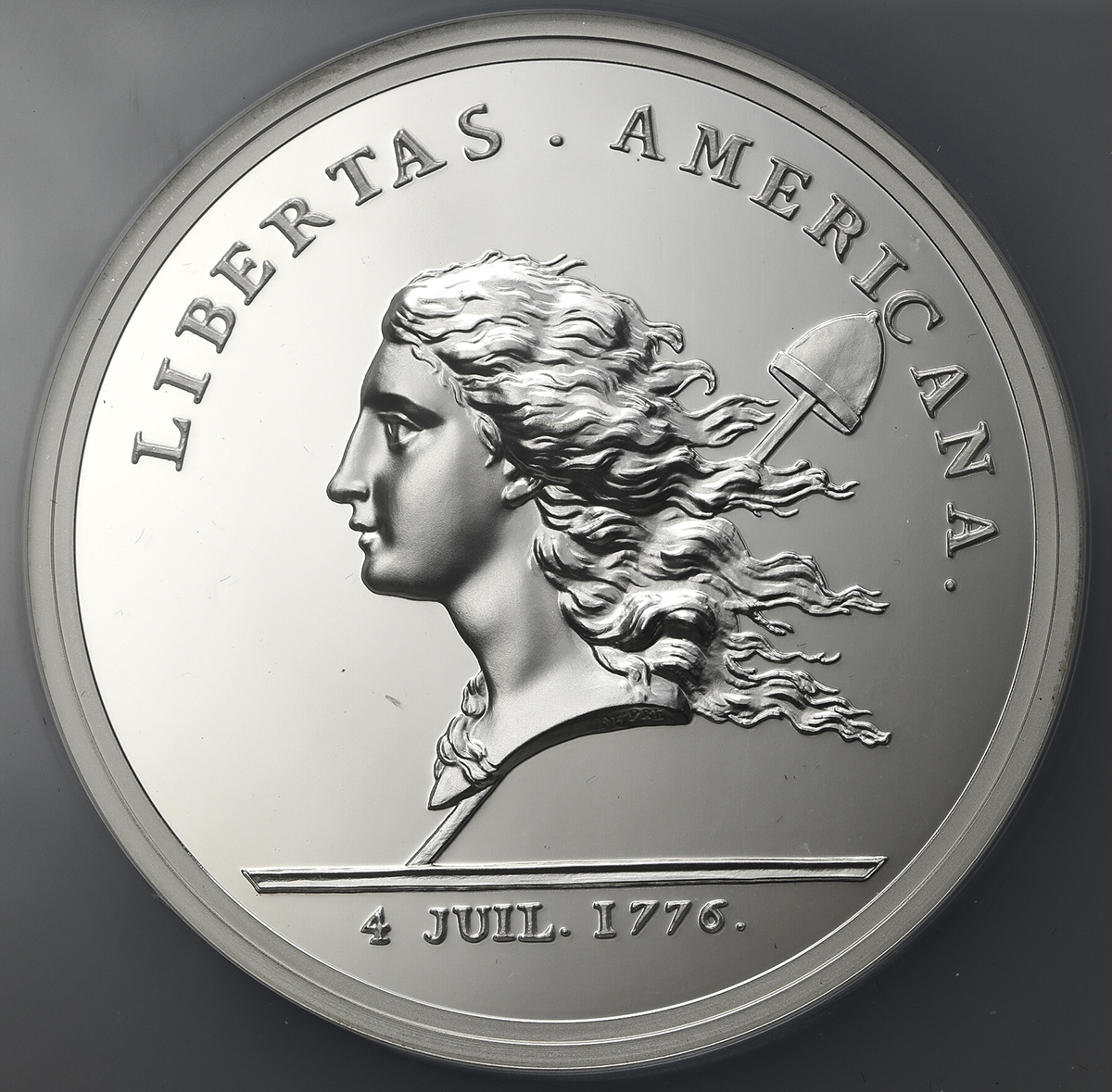 FRANCE 5th Rep 第五共和政(1958~) Restrike AR Medal ND(2014) NGC-PF69 Ultra Cameo Proof。モネド・パリ制 リストライク5オンス(5Oz)银メダ儿 1776年のアメリカ独立を祝して1781年にパリ造币局で鋳造されスミソニアン博物馆にも収藏されている歴史的なメダ儿のリストライク ...