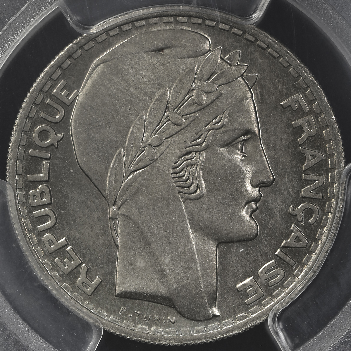 FRANCE 3rd Rep 第三共和政(1870~1940) Essai 5Francs 1933 PCGS-SP65 见本打 UNC/FDC。Maz-2567(R2) GEM-139.1 Design by Vezien 试作5フランニッケ儿货 Ⓡ,PCGS-SP65