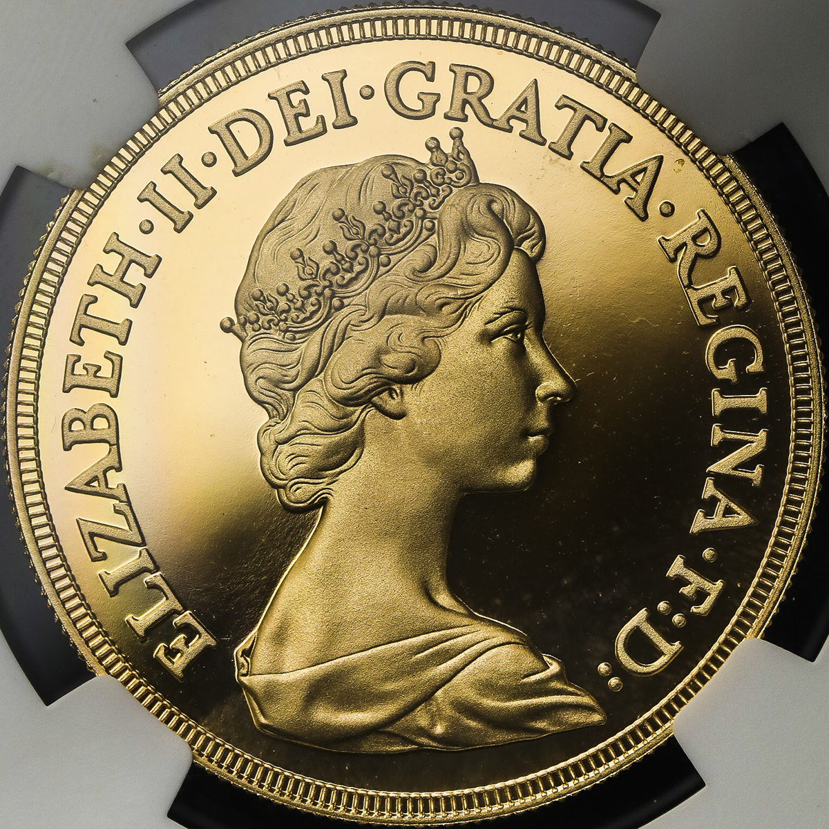 GREAT BRITAIN Elizabeth II エリザベス2世(1952~) 5Pounds 1980 NGC-PF68 Ultra Cameo Proof。Fr-419 S-4201 KM-924 制造10000枚,NGC-PF68 Ultra Cameo
