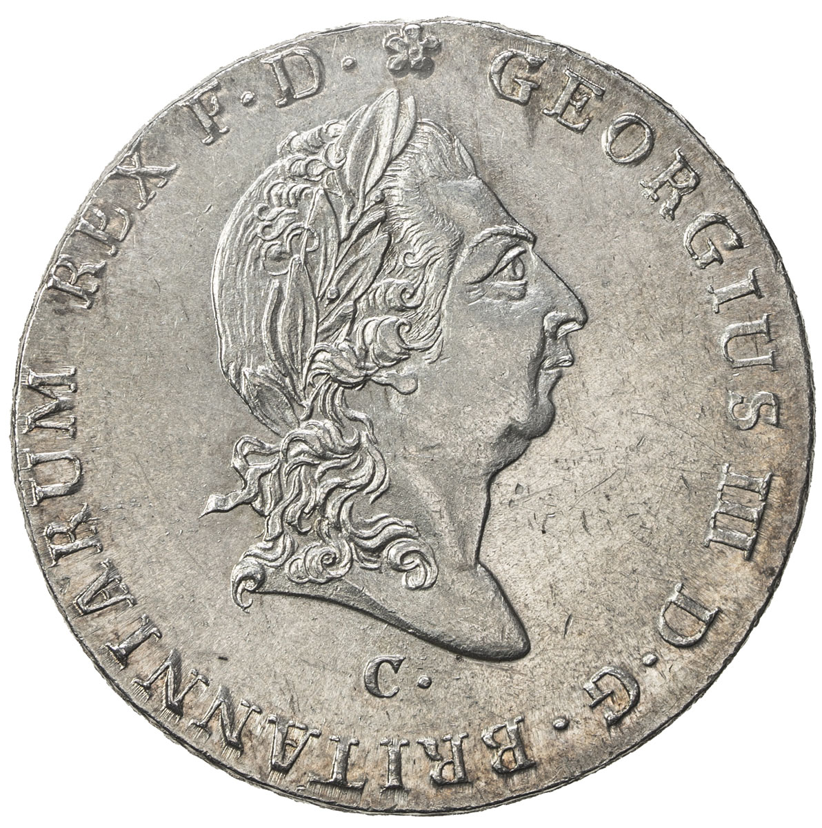 World Coins - Europe,BRUNSWICK-LÜNEBURG-CALENBERG-HANOVER: George III of Great Britain, 1760-1814, AR 1/6 thaler (3.24g), 1762-IWS, KM-342, crowned arms , St. Andrew, iridescent toning, EF to AU, ex Don Erickson Collection.