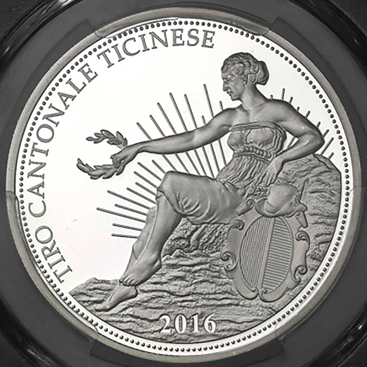 SWITZERLAND Shooting Festival 射击节 50Francs 2016 PCGS-PR70 DCAM Proof。ティッチーノ,PCGS-PR70 DCAM