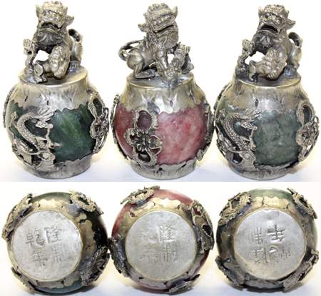 Varia 3 Zierkugeln mit Lowen- und Drachendekor aus "Tibetsilber". Laut Bodenmarken alle auf Qian Long (1736-1795) datiert, aber dennoch Anfertigungen des 20. Jh. Hohe jeweils 65 mm