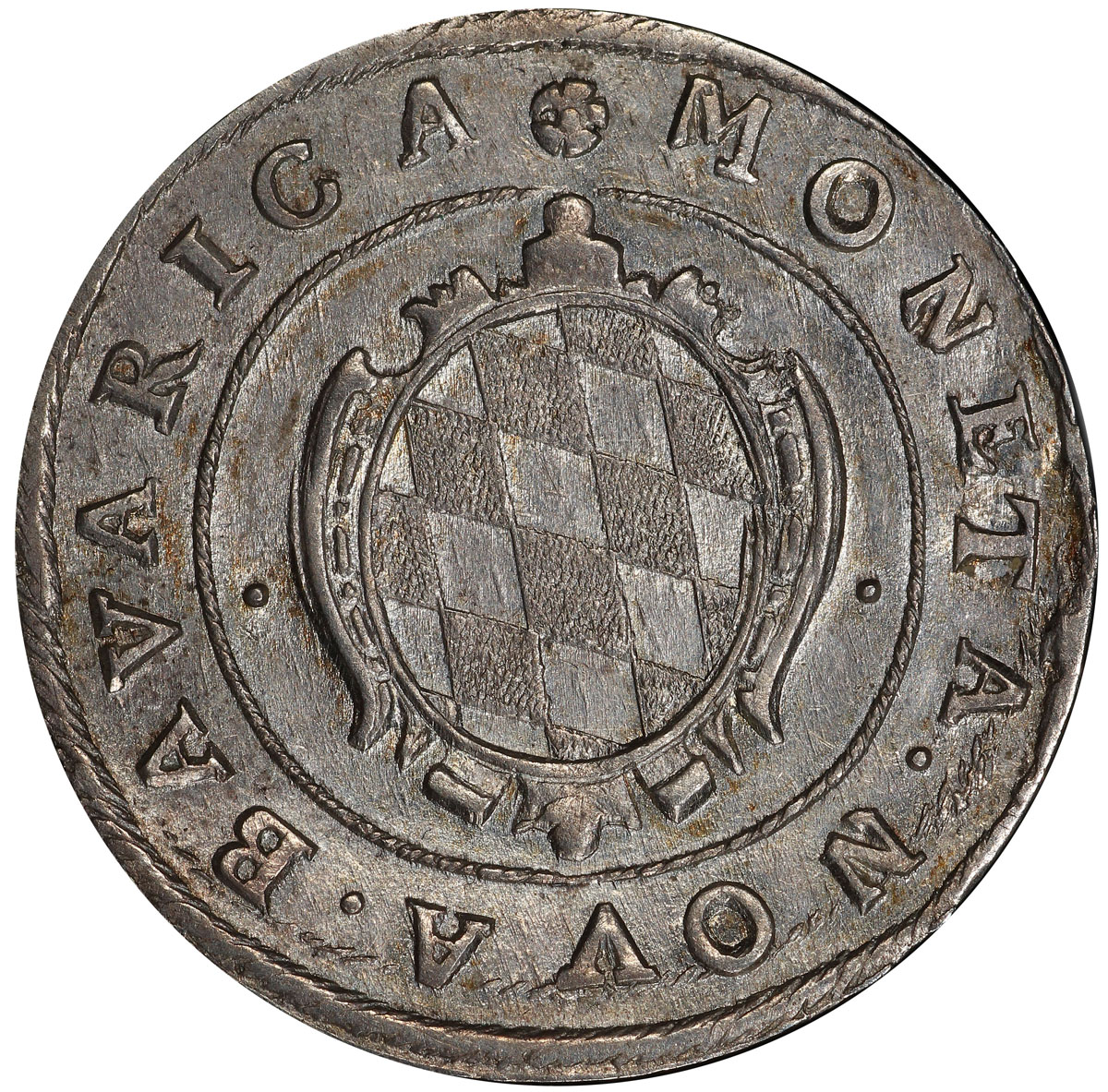 World Coins - Europe,BAVARIA: Maximilian I Joseph, king, 1806-1825, AR thaler (kronentaler) (29.55g), 1812, KM-706, crown above crossed sword and mace, VF, ex Don Erickson Collection.
