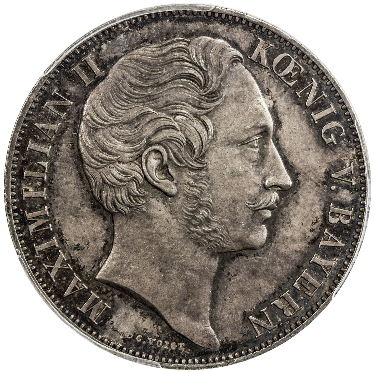 World Coins - Europe,BAVARIA: Maximilian II, 1848-1864, AR 2 gulden, 1855, KM-848, Restoration of the Madonna Column in Munich, toned, PCGS graded MS64 Secure Holder.