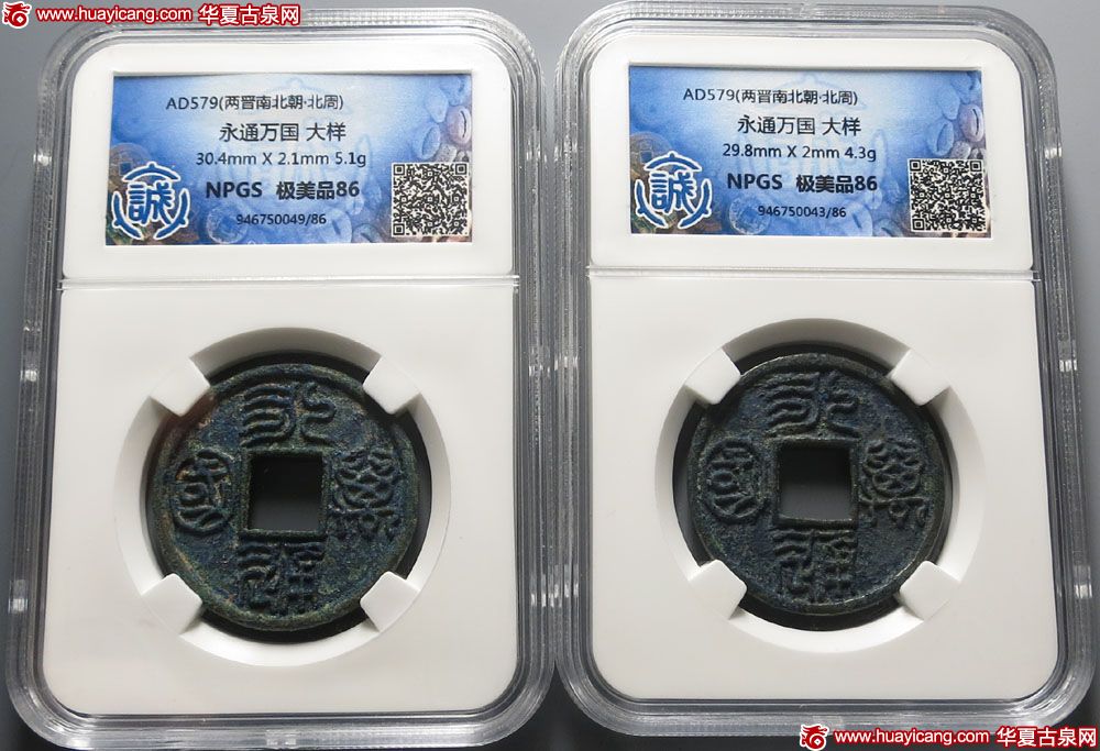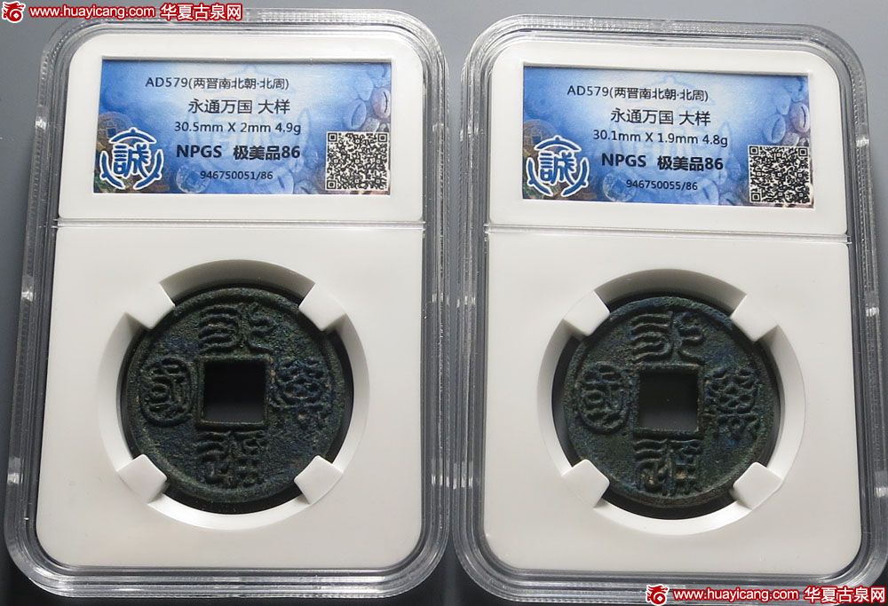 永通万国2枚,30.5mm*2mm 30.1mm*1.9mm 众诚评级86分,估价:25000元以上,起拍价:14000元。
